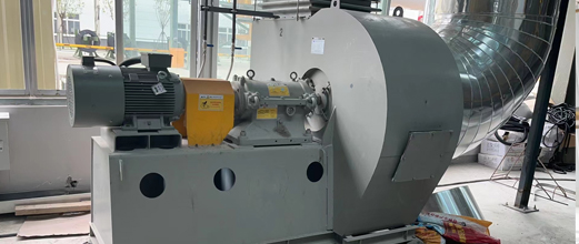 與一般離心通風機的基本原理大致相同,當葉輪高速旋轉時,空氣的葉輪也被驅動在一起旋轉,此時,葉輪中的空氣將被拋到葉輪的邊緣,在葉輪中產生真空,因此,在壓差的作用下,不斷流入,補充到葉輪中,使風機有能力吸收空氣。這是基本的除塵風機基本原理。